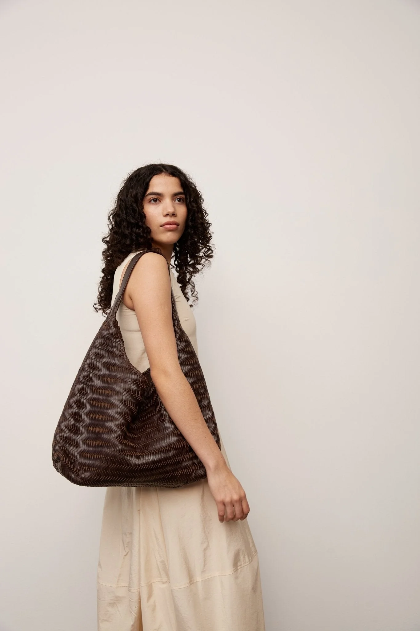 A beautiful and spacious shoulder bag crafted from soft, hand-woven leather – ideal for anyone who loves a natural yet refined look. The organic silhouette and flexible weave give the bag a relaxed, sophisticated expression, while the wide strap makes it comfortable to carry on the shoulder.